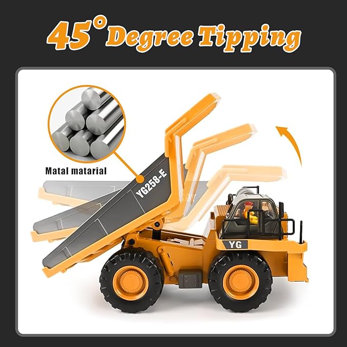- Durable and Sturdy: The dump truck features a metal bed with a load capacity of up to 6.6 pounds, ensuring durability and reliability in various play environments. Its realistic design makes children feel as if they are on a real construction site
