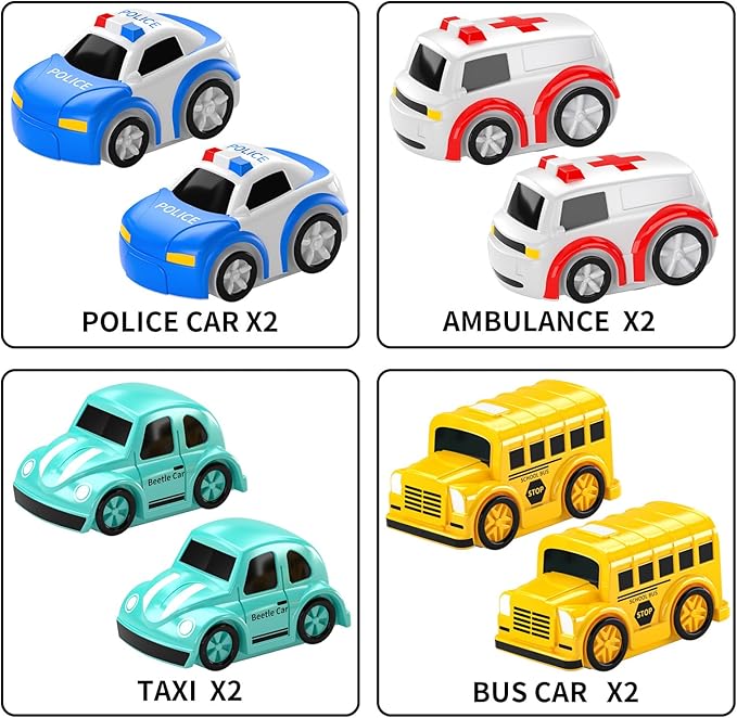 - Fun Race Track Model: Stand the fuselage, open the doors on both sides and assemble the curved race tracks easily, which allows small cars toys to quickly slide from top to bottom. The airplane toy sets features 2-in-1 track cooperative game