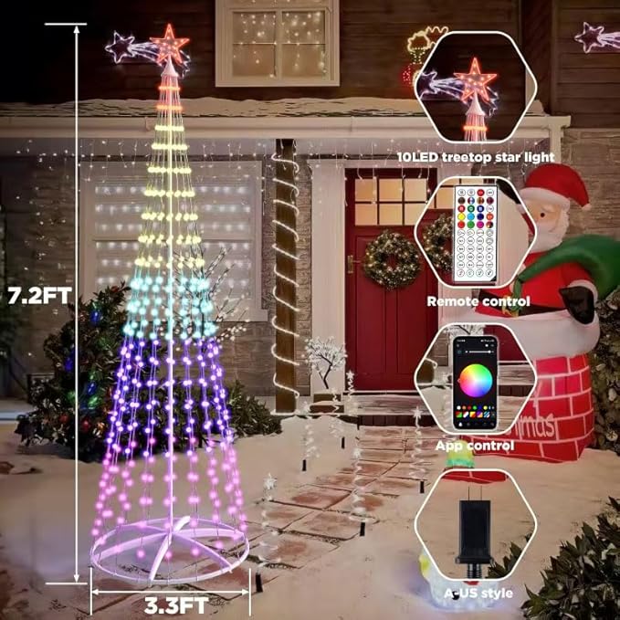 - Music Synchronization: The outdoor lit christmas tree lights can sync and dance to the rhythm of your favorite tunes, creating an immersive and festive experience. Perfect for parties; birthdays; weddings; Thanksgiving; and holiday decorations