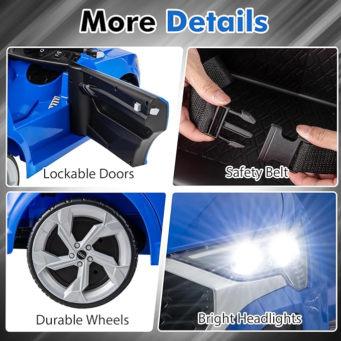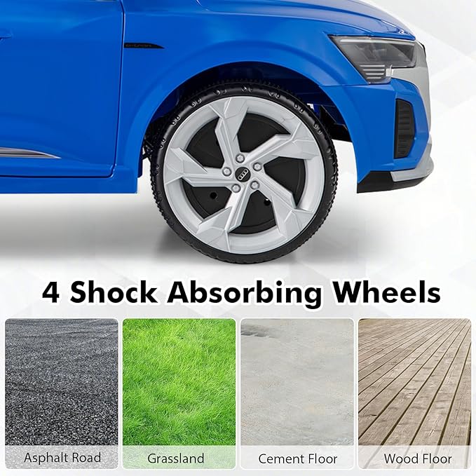 - Licensed Audi SQ8 Appearance: INFANS kids ride on car with official Audi's typical SUV styling and is equipped with steering wheel, foot pedal, forward and back and LED headlights for a real car charm that gives kids 3+ years old a real ride experience.