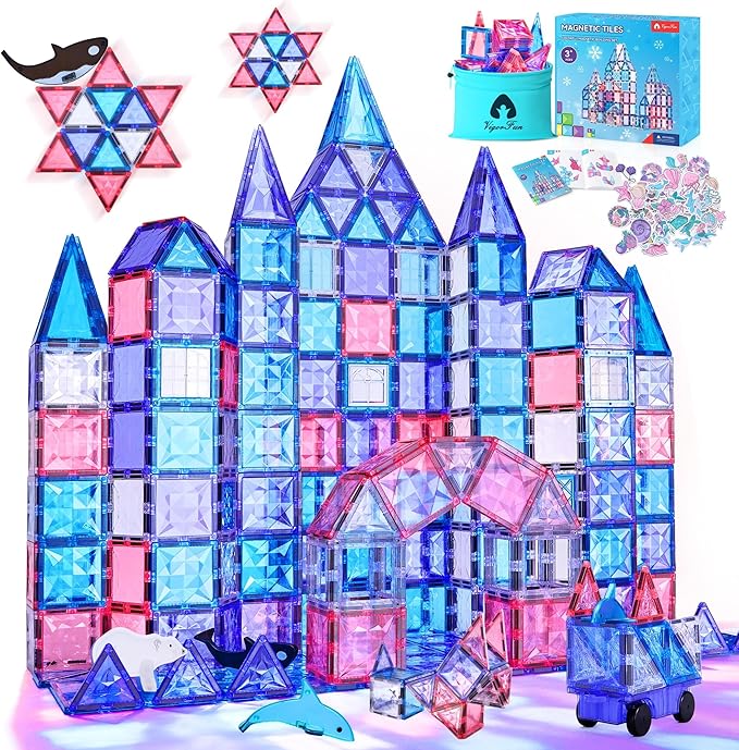 VigorFun 127-Piece Magnetic Tiles Building Set – STEM Construction Toys with Car & Animal Models, Stickers – Educational Sensory Kit for Kids Ages 3-8, Ideal Gift for Boys & Girls