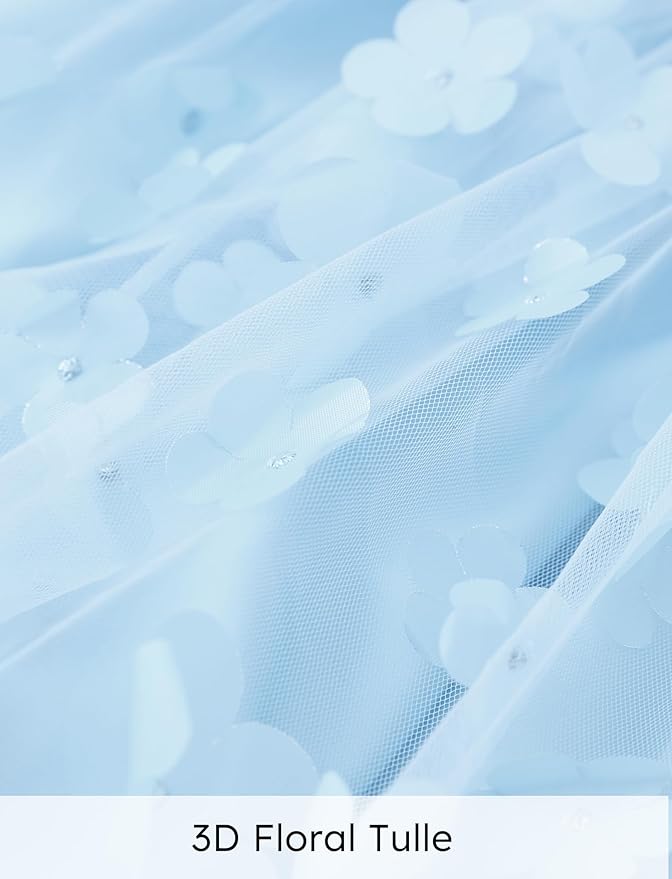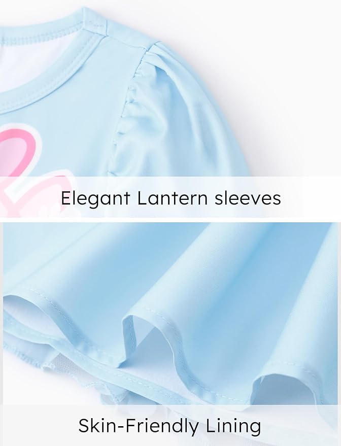 - Unique Design:This girl's dress is light blue with long sleeves. The upper part of the dress is printed with a Peppa Pig pattern, with flowers on her head, which makes her look very cute. The lower part of the dress is made of blue tulle and decorated with many blue small flowers, adding a sweet and dreamy feeling. This dress is very suitable for daily wear or birthday party.