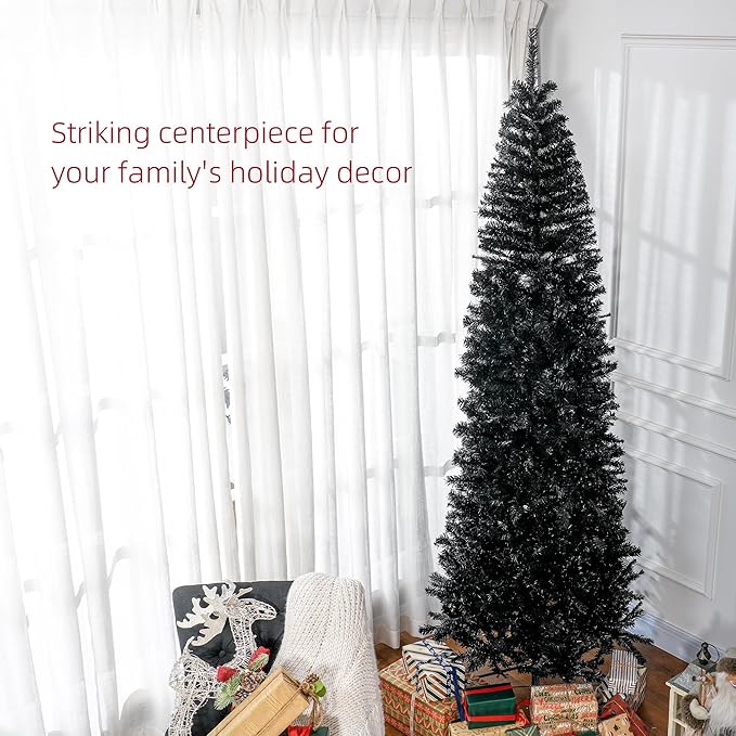 HOMCOM 8ft Pencil Christmas Tree, Unlit Artificial Christmas Tree Slim Douglas Fir Xmas Tree with Realistic Branches, Halloween Tree with 1168 Tips, Black