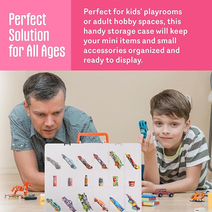 - PLASTIC CARRYING CASE FOR MINIATURES: This plastic toy-organizer case is the ideal miniature carrying case for all ages and small-part hobbies. The internal divider size is compatible with Matchbox cars, Hot Wheels cars, Shopkins toys, L.O.L. Surprise! dolls, and other mini-toy brands.