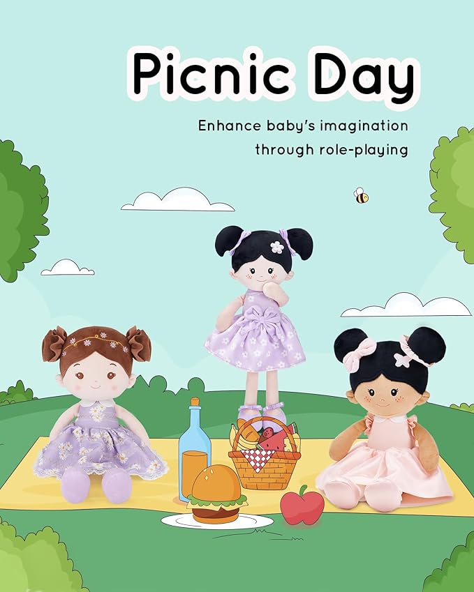 Soft Baby Doll Toys (16''), My First Baby Rag Doll for 1 Year-Old Girl Birthday Gift, Christmas Plush Toys Gift for Toddler Kids Infants-Daisy-Girl-Light-Purple