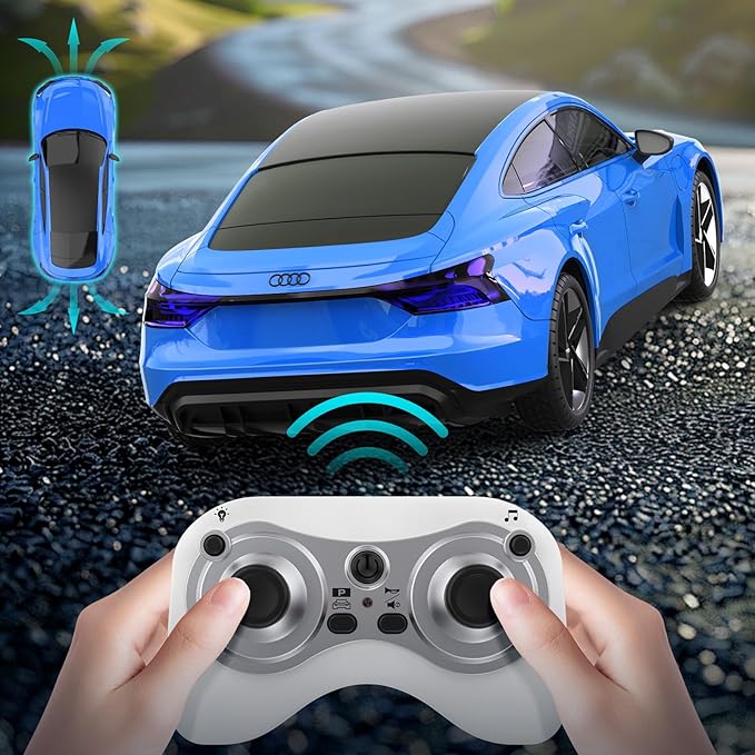 - INTERACTIVE FEATURES FOR AN ENGAGING EXPERIENCE: With five LED lighting effects, horn sound effects, and built-in turn signals, our remote control truck brings the excitement of a real Audi sports car to your child's fingertips. Plus, the one-button automatic parking function adds an extra layer of interactivity and fun.
