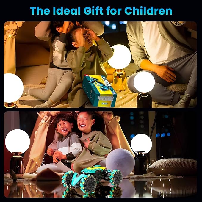 - 【GESTURE SENSOR CONTROL & 2.4GHZ REMOTE CONTROL】Just put on the sensing watch, and the hand-controlled RC stunt car will follow moving when your hand dances! You can also steer the gesture RC car with a handle controller. Easy for kids to operate