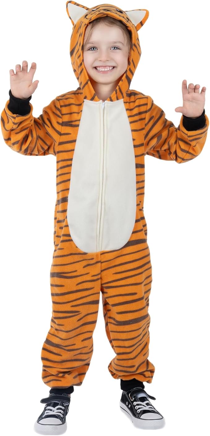 - Soft Lightweight Material-our tiger onesie for kids is made of middle thickness fleece fabric,machine washable. Super soft and warm for a chilly weather Halloween night.