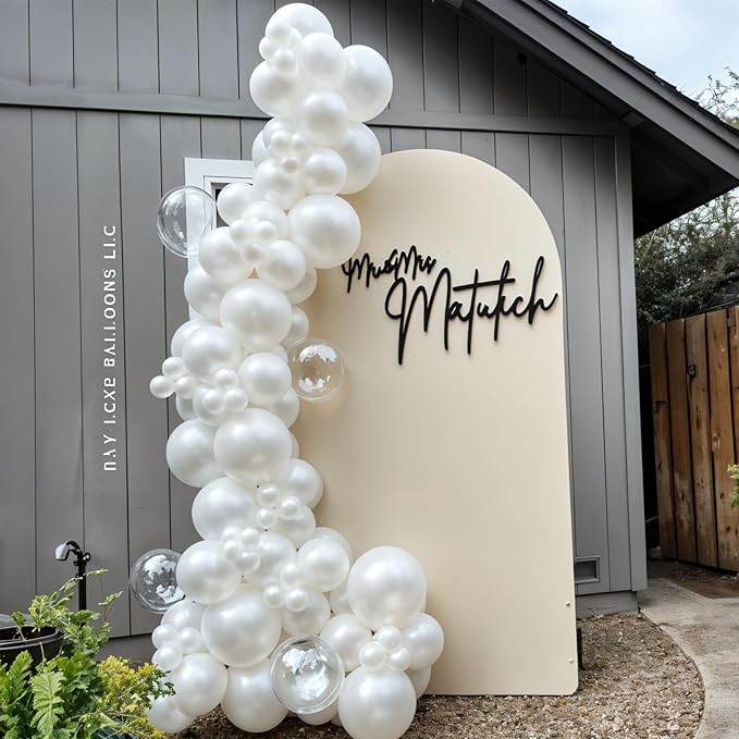 - 【Suitable For Various Occasions】Whether it is a wedding, bridal shower, birthday, baby shower, gender reveal or anniversary, Christmas, New Year's, this double layer pearl white balloons garland kit can perfectly match your party theme and create an unforgettable atmosphere. Suitable for any indoor and outdoor party event decoration, the balloon color is versatile and can be combined with other colors to add personalized design to your event occasions, ensuring that every guest is impressed.