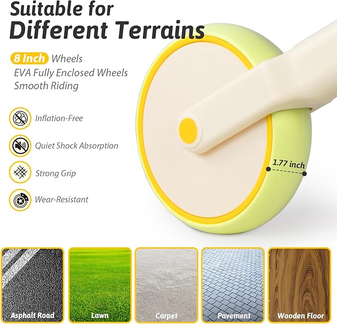 - Lightweight & Durable: Crafted with anti-rust carbon steel, this balance bike for 2 year old is both strong and lightweight, only 5.95 lbs, making it easy for toddlers to handle. Equipped with 8 Inch EVA wheels, it’s designed for a smooth ride across various surfaces, from pavement to grass. Plus, all materials are friendly, ensuring your child’s safety while they play