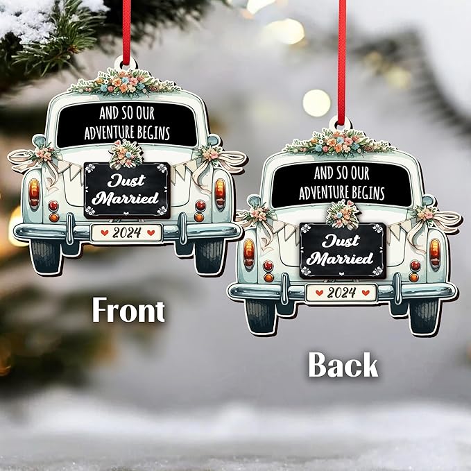 - FIRST CHRISTMAS MARRIED ORNAMENT 2024 - Capture the joy of new adventure with these heartfelt Christmas decorations. Stunning as just married couples gifts, they celebrate your love and ideal for engagement, wedding gifts for couples 2024, anniversary gifts for him, her, gifts for newly engaged couples, or lovely bridal shower gifts for bride.