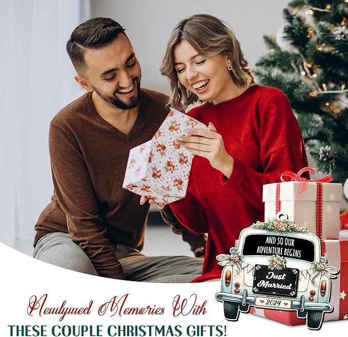 - COUPLE CHRISTMAS ORNAMENTS - Enhance your Christmas tree decorations with this beautiful first Christmas married, wedding ornament 2024. Exquisite as engagement gifts for him, her, they make warm wedding gifts for men, women, newlyweds, charming Christmas couple gifts, newly wed gifts for the couple, or even engagement party decorations.