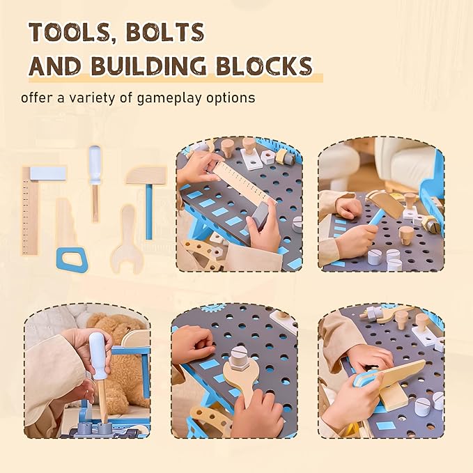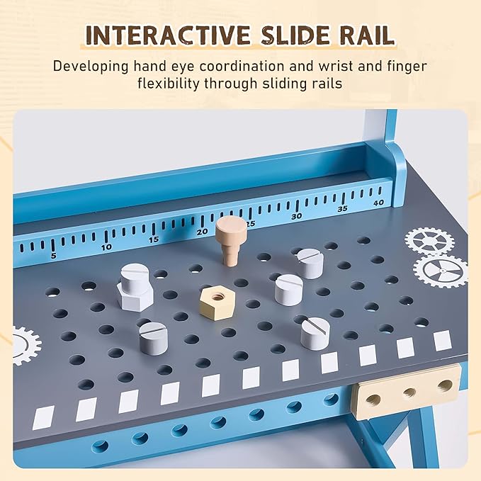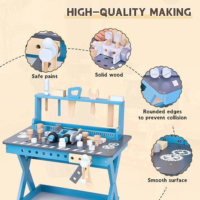 - Safe And Durable: Crafted from high-quality materials, this toddler workbench is built to withstand hours of imaginative play. Enjoy peace of mind knowing your child is using a safe, sturdy, and durable kids workbench playset that encourages exploration!