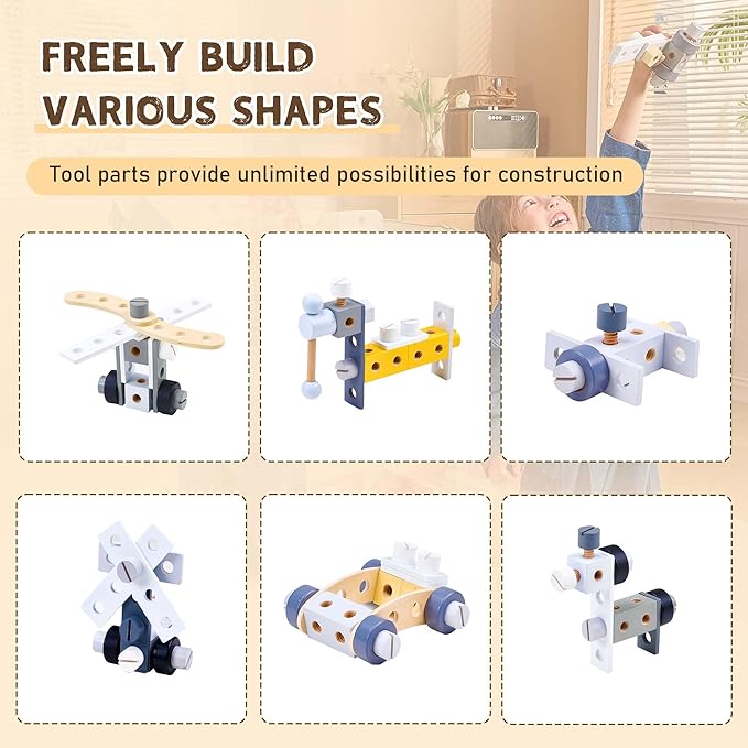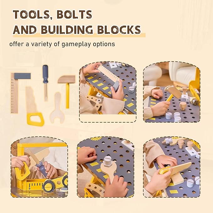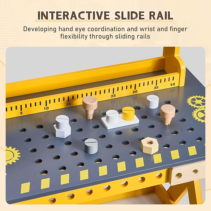 - Safe And Durable: Crafted from high-quality materials, this toddler workbench is built to withstand hours of imaginative play. Enjoy peace of mind knowing your child is using a safe, sturdy, and durable kids workbench playset that encourages exploration!