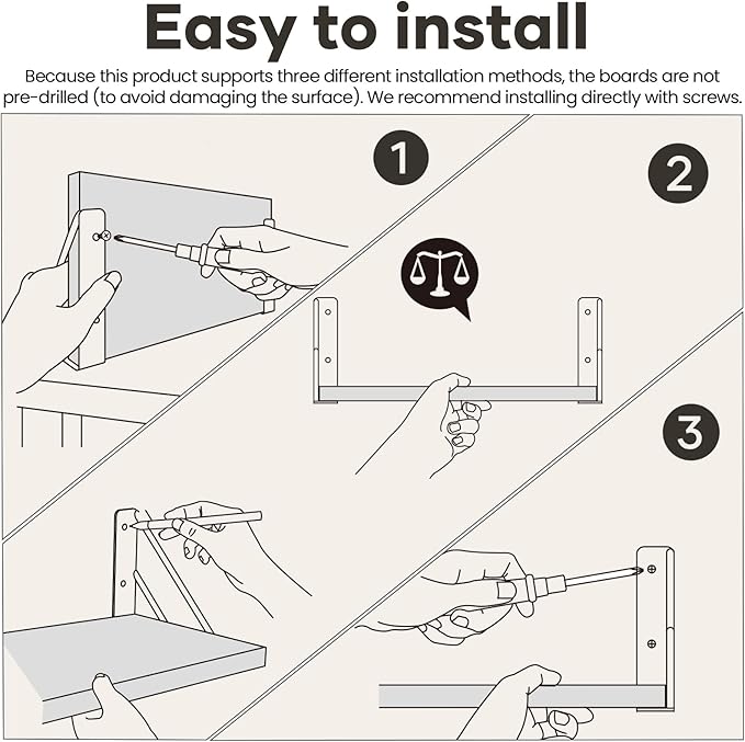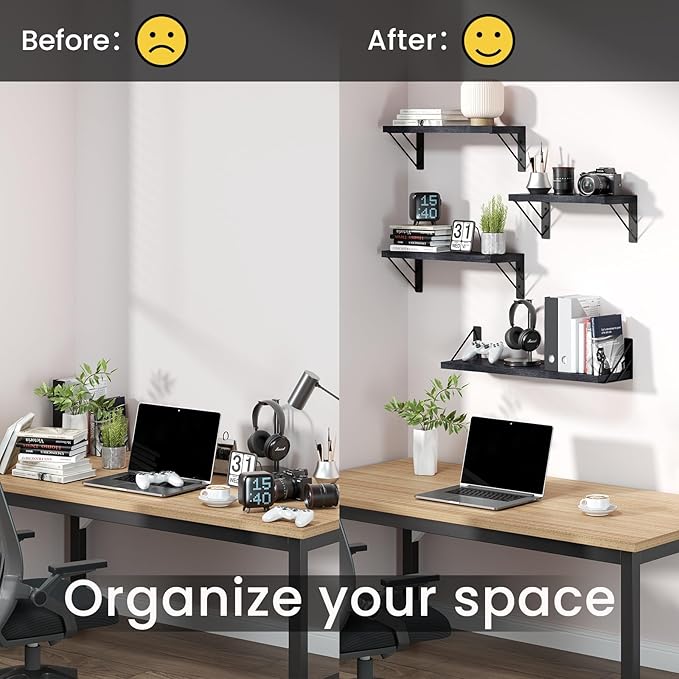 - Quick & Easy Installation – Designed as an easy-to-install floating wall shelf, it solves common setup problems with clear instructions, included hardware, and compatibility with drywall, studs, or concrete walls. Perfect for renters and homeowners alike.