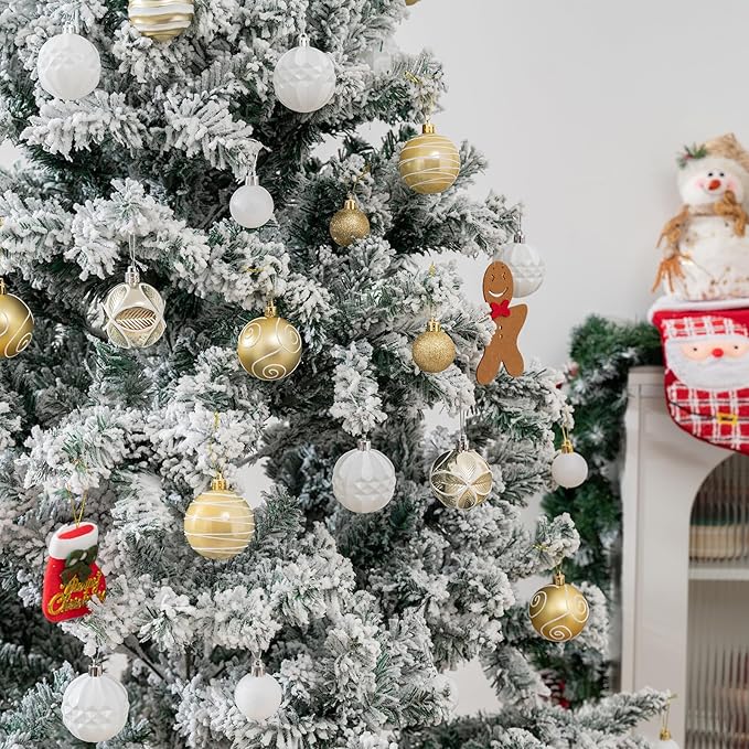 - 【100PCS CHRISTMAS ORNAMENTS SET】 These gold and white christmas ornaments for christmas tree have different finishes, including matte, glossy, frosted and stripe. There are also assorted of christmas ball ornaments in different shapes and styles to perfectly decorate your christmas tree