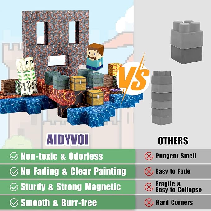 - Strong Magnetic: With powerful and enough magnets ensuring a secure connection between magnet blocks. AIDYVOI magnetic blocks provide stability for hours of role-play fun and firm support for complex and durable designs