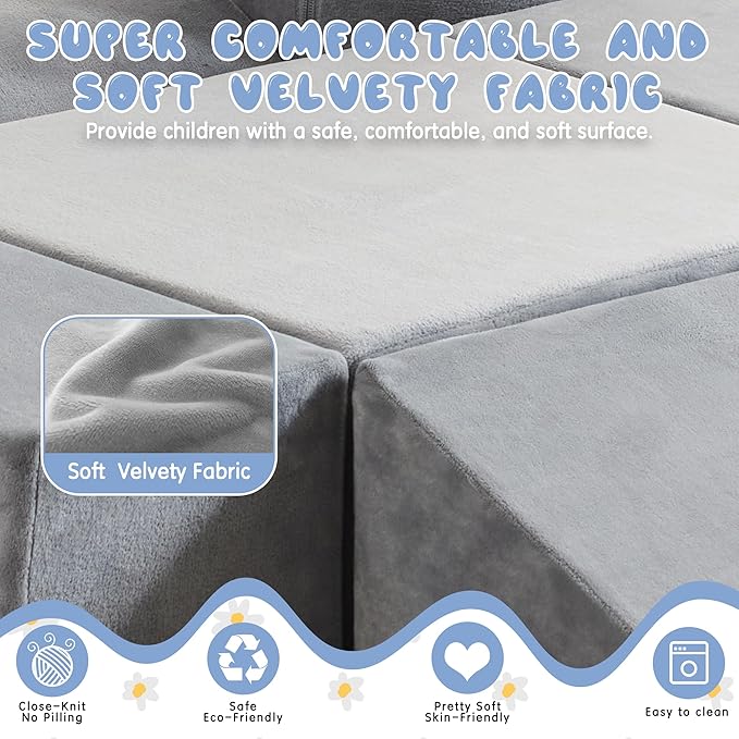 - 【SUPERIOR VELVET FABRIC】: These climbing blocks are soft , anti-static, no pilling, non-slip, durable fabric made. Firstly developed velvet fabric, have applied to many jela products and tested welcome for this superior quality with nice touch sense and high class texture. We keeps trying to bring products that can meet your practice and aesthetic demands, blending into our kids fun toys.