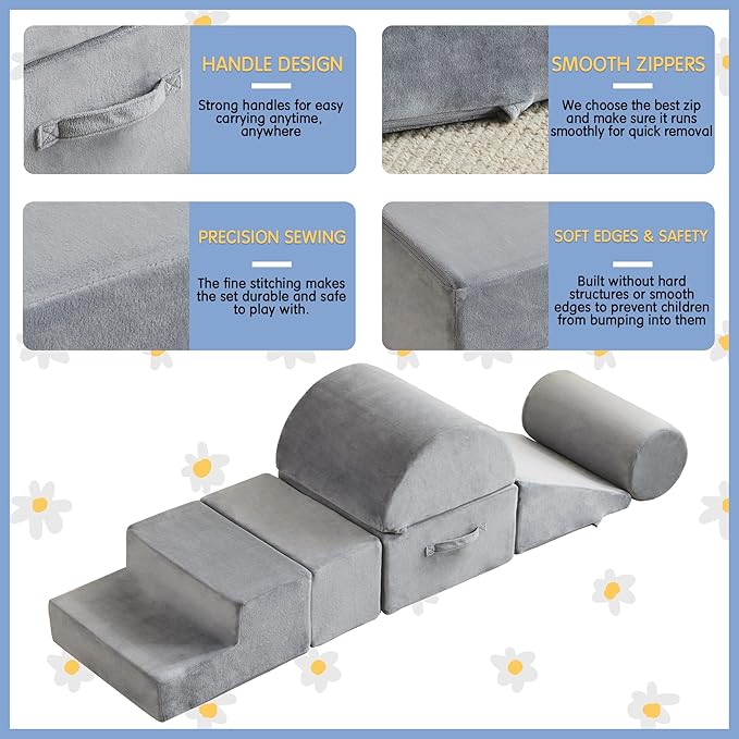 - 【EASY TO SETUP&COLLECT】: The foam climbing blocks set is easy to detach with smooth zippers, hidden zippers and handles to carry considerately designed for kids. machine washable covers, you can wash them anytime for brand-new look. Your babies will absolutely love this soft play equipment! Should you have any query please feel free to contact us , we will reply immediately.