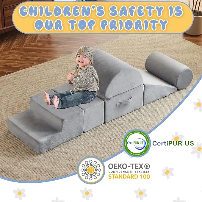 - 【SAFE AND GUARANTEED】: Jela foam climbing blocks are CertiPUR-US certified, non-toxic, environmentally friendly, and odorless fabric with OKEK-TEX approved. The soft play climbing for toddlers with hidden zippers are designed to avoid scratching children's soft skin. We focus on offering kids a reassuring environment to play, the product is built without hard structure or smooth edges, to prevent kids from bumping.