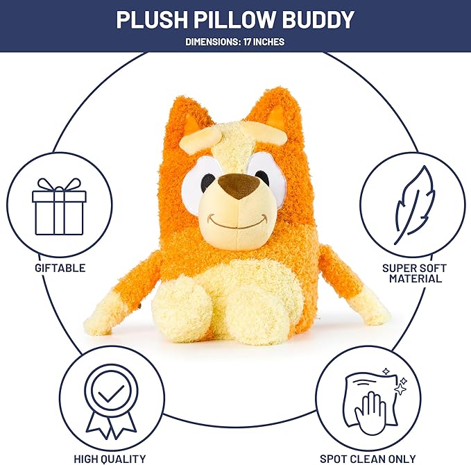 Jay Franco Bluey Plush Pillow Buddy - Soft Plushie Stuffed Pillow, 17 Inches, Orange - Bingo