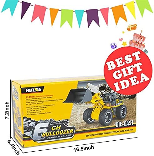 - [Alloy remote control loader]-The alloy material, alloy cab and loading arm of the remote control toy loader greatly improve the loading capacity of the remote control toy front loader. The simulated metal-reinforced wheels make the RC truck work more smoothly, Simulate real manipulation and restore the real construction vehicle use scene, make you experience the fun of operating the construction vehicle.