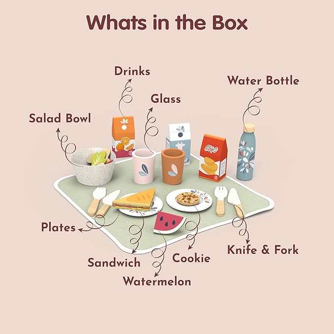 - ππππππΎπ πππ πΌπππ 3+: Specially designed for toddlers and preschoolers, this picnic basket is sized just right for little hands to carry! It encourages pretend play, sharing meals, and lots of creative funβperfect for any young adventurer looking to plan a delicious outdoor outing or imaginary snack time!