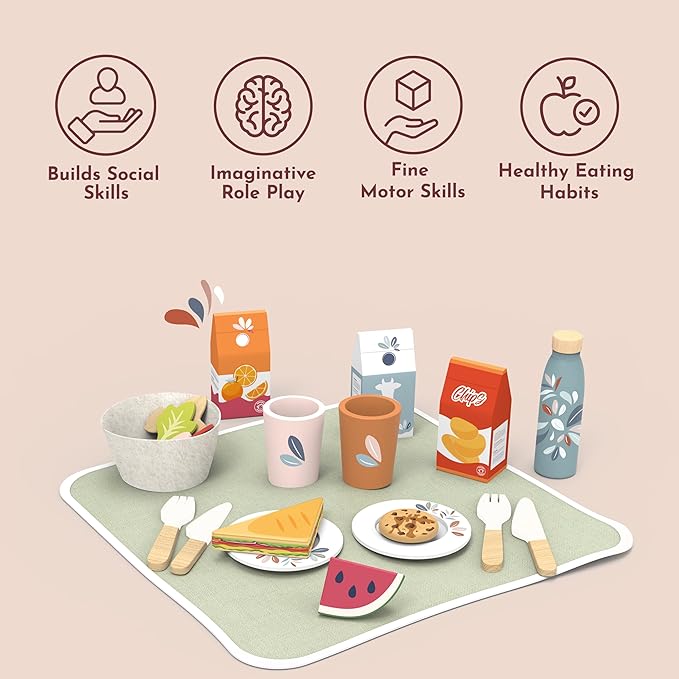 - ππΎπ-ππππππΏππ ππΌπππππΌππ: Made from FSC certified wood, this picnic basket is not only durable but also kind to the planet! Your child can enjoy eco-friendly outdoor play while pretending to pack snacks for a nature adventure. A wonderful addition to any green-themed playtime!