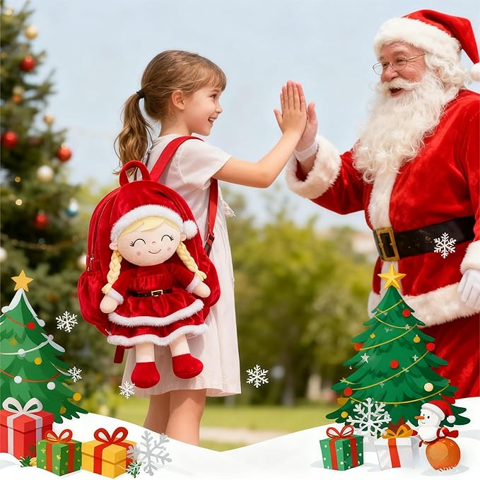 - 4️⃣ 🎁Perfect Holiday Gift: Whether it's for Christmas, a birthday, or any special occasion, this limited-edition Christmas doll backpack is sure to be a favorite. It brings warmth and excitement to any festive moment.