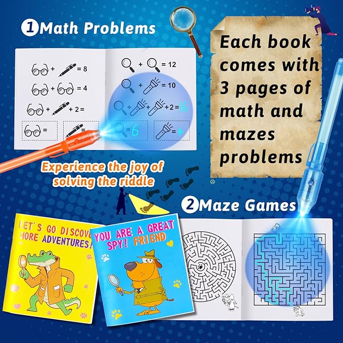 - Fun Invisible Ink Pen with Notebook: Our party supplies toys have 16pcs invisible ink pens and small notebooks. Each notebook has maze games and arithmetic problems, which allow children to fully experience the excitement and fun of solving puzzles! Best party favors for kids 4-8, prizes for elementary students, easter basket gifts