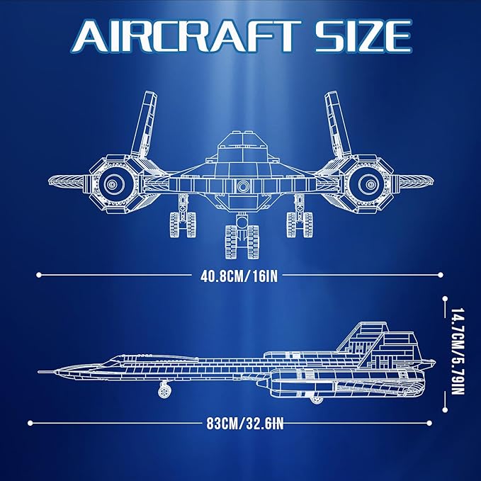 - 【ULTRA LARGE SR-71 TRACTOR BLOCK KIT】Explore the limits of the sky and build a realistic strategic rocket plane--Ultra Large SR-71 Tractor Block Kit. The kit consists of 1775 pieces of high-quality block particles, accurately reproducing the streamlined appearance and complex structure of the SR-71, suitable for players with a passion for aeromodelling. Every detail has been designed to ensure that the building process is not only fulfilling but also gives you an in-depth understanding.