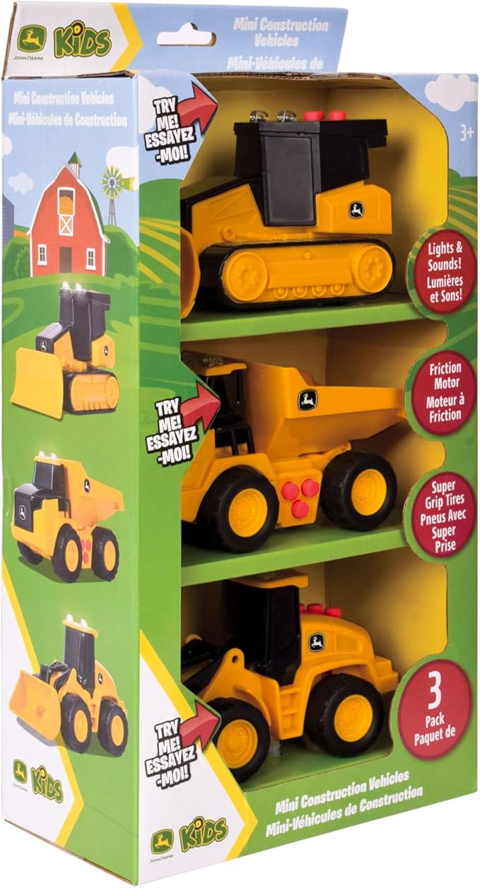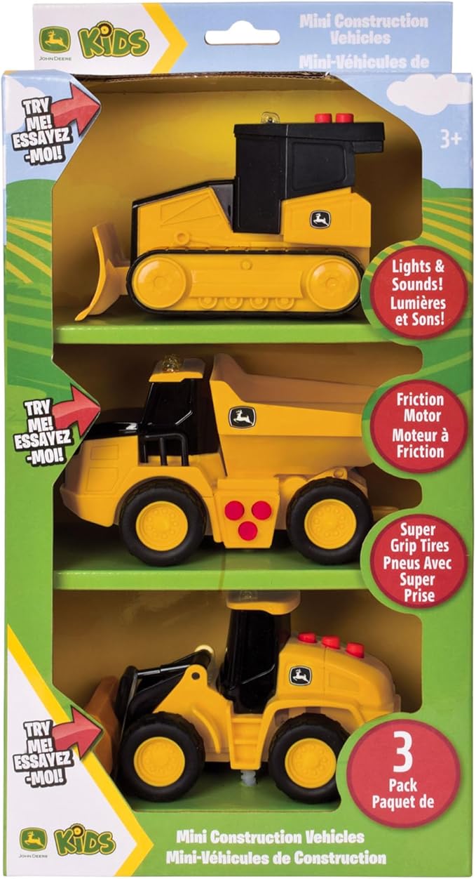 John Deere Realistic Farm Vehicles 3 Pack, 5" Toy Construction Vehicles with Lights, Sounds and Friction Rev Motor, Party Favor and Gift for Kids 3+