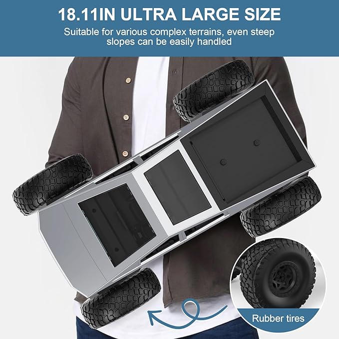 - 【Upgraded Larger and More Realistic】Experience the thrill of owning a Cyber Monster Truck that's 8X larger than others!Realistically reproduces the classic appearance of cyber truck with exquisite details, making you feel as if you own the same small version of the car of future