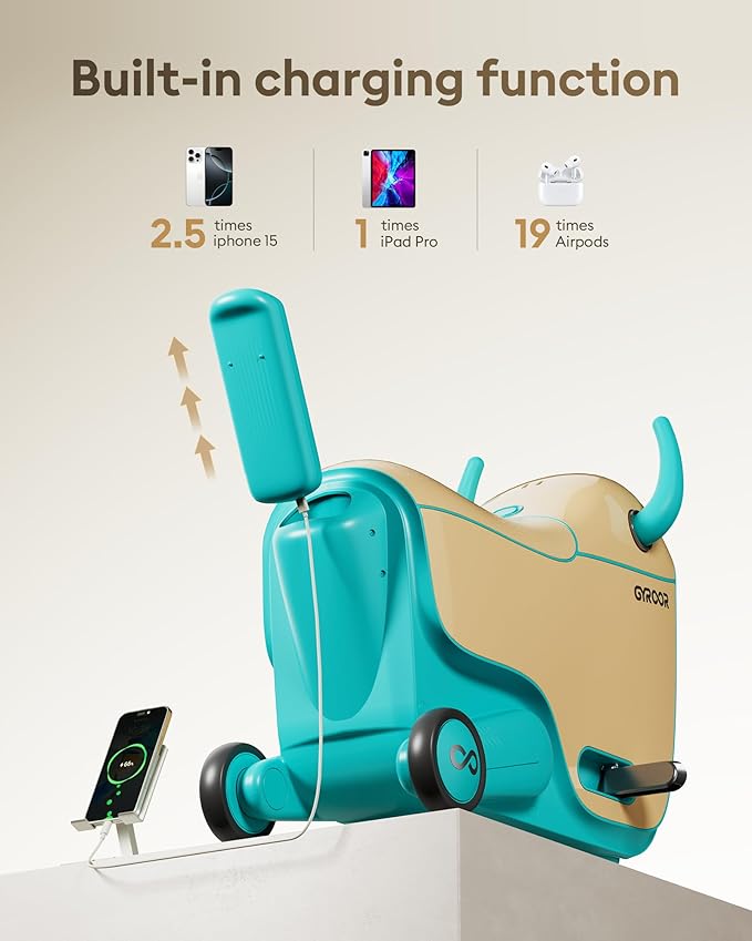 - Power-Packed: With a 13000mAh battery, Gyroor ride-on GNU doesn't just offer a thrilling ride but also serves as a portable power source. It can charge your child's phone, earphones, iPad, and other devices. It's entertainment and convenience packed into one gadget, making it a must-have for your tech-savvy kids.