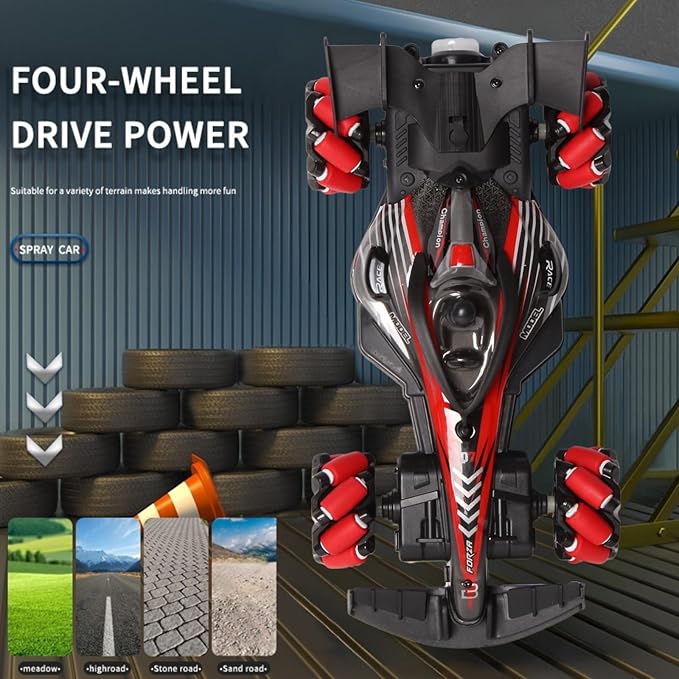 2.4GHz Remote Control Car - 360° Spin High-Speed Drift F1 Formula Racing, with Spray, Music & Light, Toy for Kids 8-12 Year Birthday Coolest Best Toy(Red)