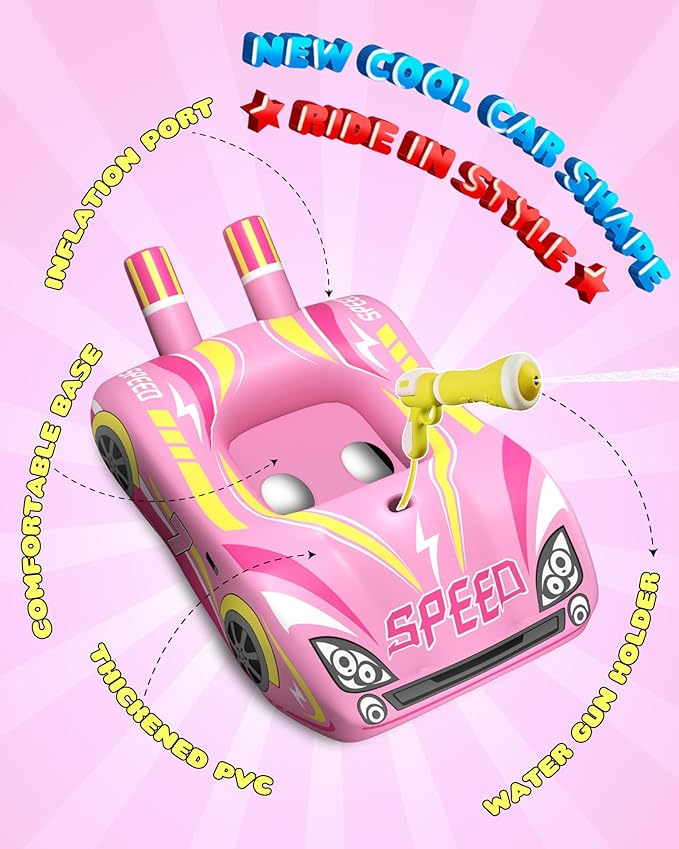 JOSEN Pool Floats Kids with Water Gun, Inflatable Ride-on Car Funny Pool Floats for Kids Ages 3-8, Toddler Pool Float, Summer Outdoor Lake Beach Party Pool Toys for Boys Girls