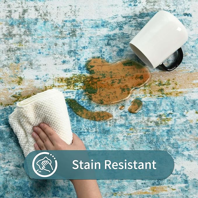 Ompaa Living Room Rug 6x9 Teal Blue Area Rug Machine Washable Boho Rug Non Slip Abstract Vintage Indoor Large Rugs for Bedroom, Classroom, College Dorm, Farmhouse, Dining Room, Kids Playroom