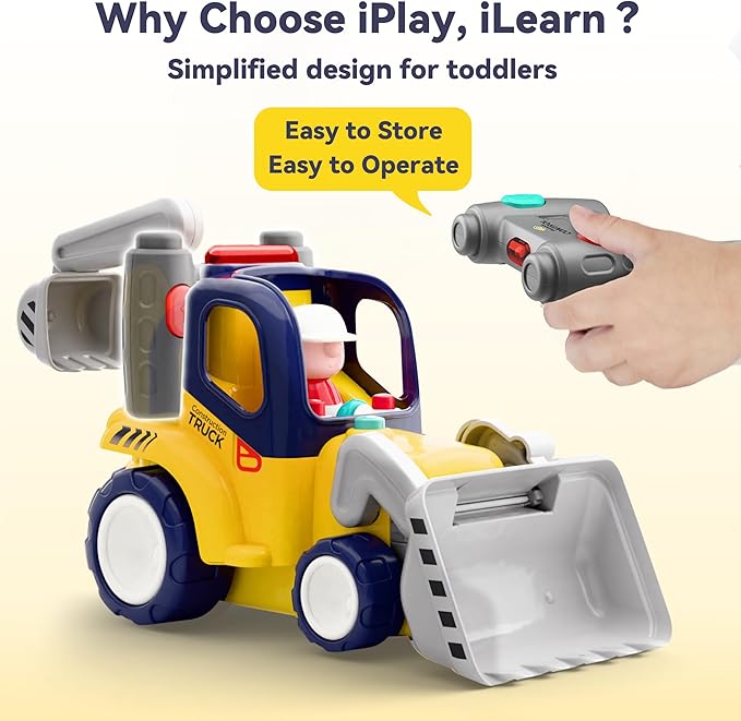 iPlay, iLearn Remote Control Construction Truck Toy for Toddlers 2-4, Baby RC Car Toys W/Light Sound, Backhoe Loader Play Vehicle, Birthday Gift 18 24 Month Infant, 2 3 4 5 Year Old Boy Girl Children