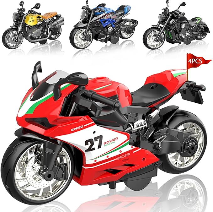 - 4-PACK ALLOY MOTORCYCLE: this pull back car toy can improve children's hand-eye coordination and sensory perception, let your child play with his friend