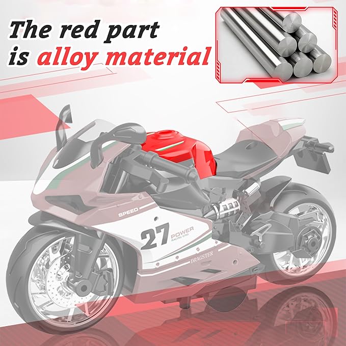 - PULL BACK MOTORCYCLE TOYS: Our die-cast cars are made of high quality alloy and abs material, safe and non-toxic, sturdy and durable, wear and tear resistant, drop resistant