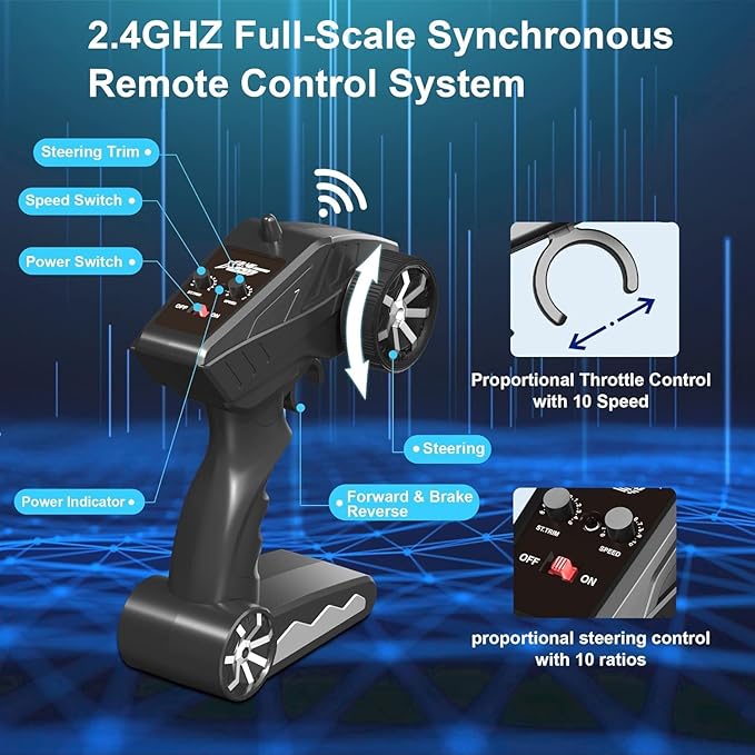 - 【Safety and Care】: We are a traditional company dedicated to toy cars, with 7 years of experience so far. Our main technical highlights are we designed the first backward as the braking function and designed the blocking protection function for the driving motor and designed the anti-collision buffer function for the steering gear, low-voltage reminding function, and forced sleep function, and also set a CA center to easier replace back up accessories and offer technical support.