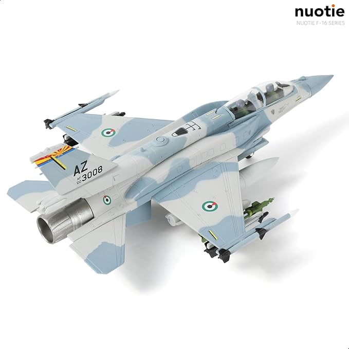 - 【Realistic Restoration】-The F-16 is a multi-purpose fighter produced by Lockheed Martin in the early 1970s. There are two versions of this jet fighter model, based on the F-16F and F-16D prototypes. The current prototype of the F-16 die-cast metal aircraft model is the UAE's F-16F BLOCK60. Whether it is the color of the paint, the cabin, or the tiny markings on the missile parts, the details are accurately captured, highly restoring the real F-16F, leaving a deep impression.
