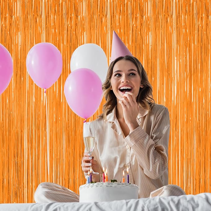 2 Pack Backdrop Curtains, 3.28 FT x 7.05 FT Orange Color Tinsel Backdrop, Metallic Party Streamer Fringe Curtains, Foil Curtains Halloween Decor Birthday Party Supplies