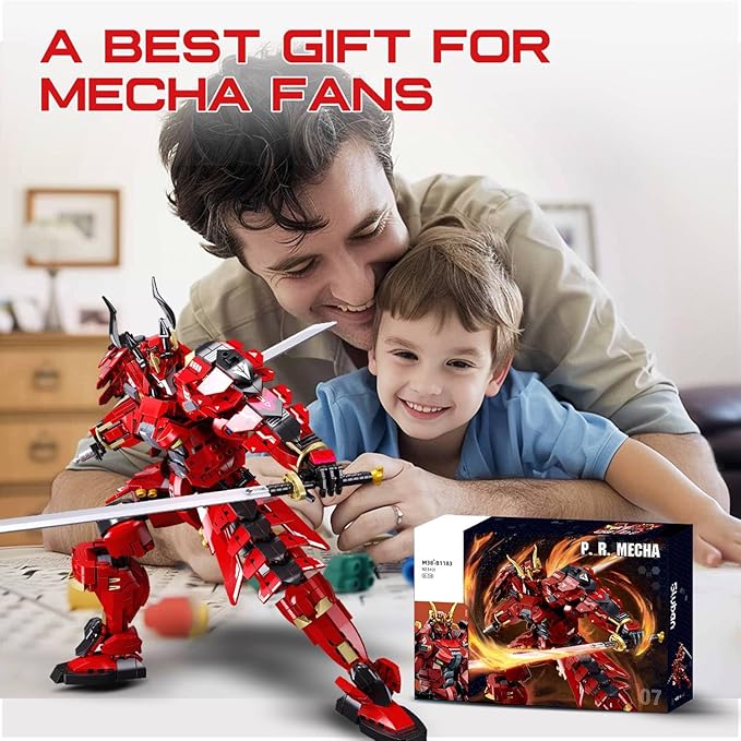 - Iconic Ninja Warrior Design: Featuring a formidable sword and intricately detailed armor, this mech building toy is ideal for action-packed adventures and captures the fierce spirit of a ninja warrior. The design combines different shades of red and black, creating a striking visual impact.