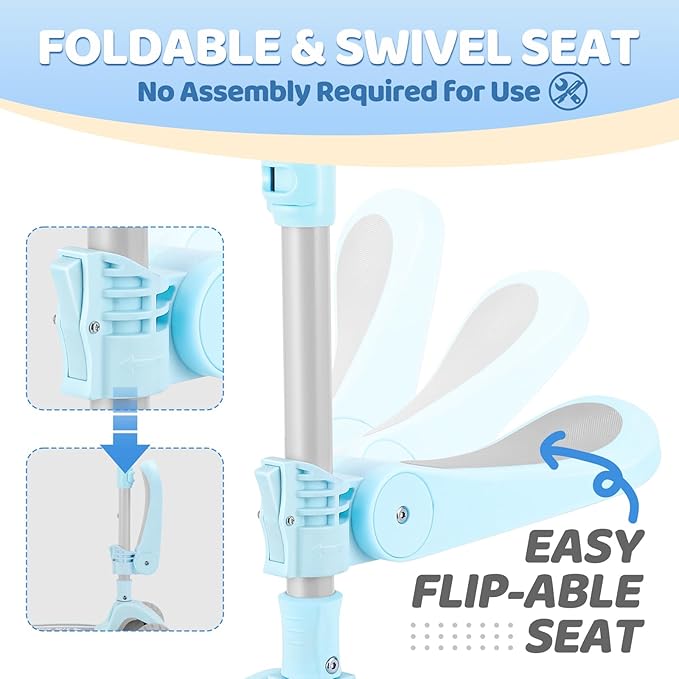 - 【2 IN1 Sit or Stand Designed】: Our toddler scooter features adjustable flip-out seat with 45lbs capacity, offering comfortable different options. Ensures a smooth transition as your child grows and flips easily so they can stand up and scooting with confidence