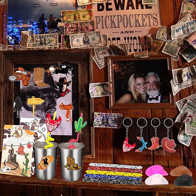- Deal Gifts: The western cowboy keychains,slep beacelets , stickers are available for stocking fillers,birthday gifts, festive ornaments, western theme parties, party decorations, and so on; These sets of western cowboy party favors are nice gifts for family and friend.