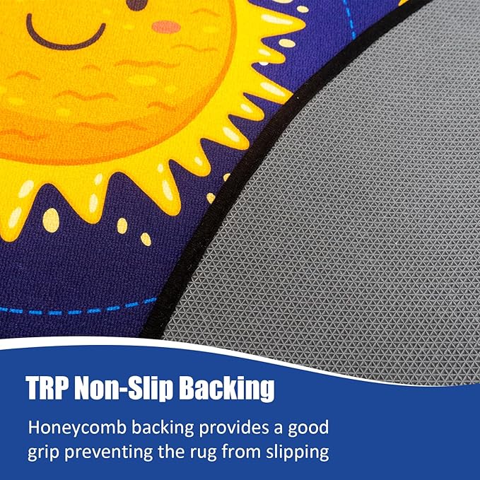 - VERSATILE AND WORTH GIFTING: This space themed rug is ideal for children's rooms, playrooms,classrooms, daycare centers and bedrooms,and it is also a perfect gift for family,friends, children,and relatives.It is both decorative and practical play mat to brighten up your child's space.
