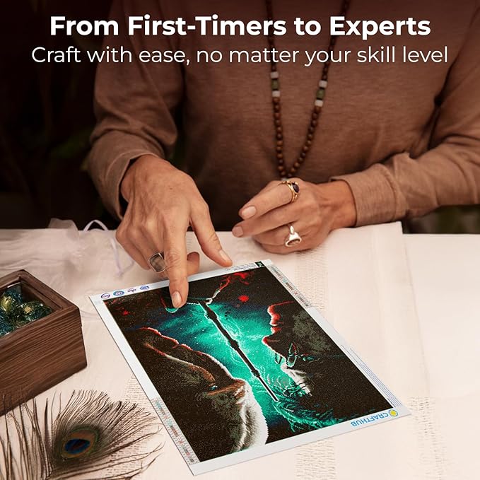 - Extra Diamonds Included - No Magic Needed! Never run out of gems again! Each kit comes with 10%–50% extra diamonds, automatically sorted and counted to ensure a complete and stress-free DIY diamond painting experience. Perfect for beginners and seasoned crafters alike.