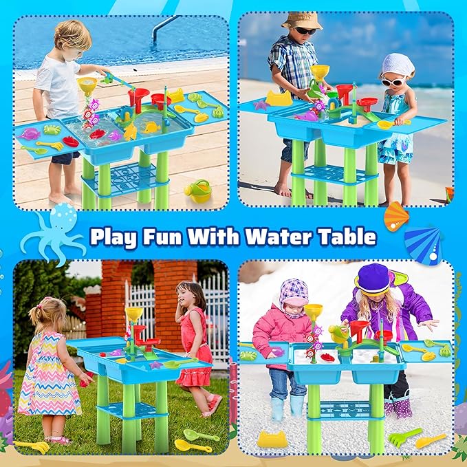 - Ideal Gift For Toddlers: Summer is coming, The sand water table can provide children with a variety of outdoor activities for many outdoor scenarios and can be used as a water activity table at the beach, pool, backyard and more. It not only allows kids to enjoy refreshment and fun anywhere in the summer, but also a great gift for any occasion, party, birthday, Thanksgiving, Christmas and holidays!