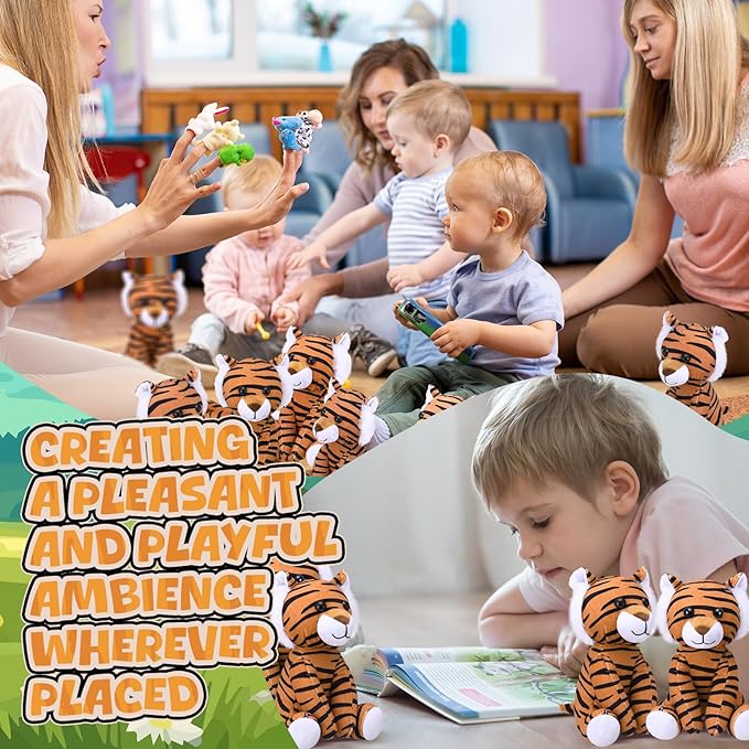 12 Pieces Tiger Stuffed Animal 6 Inch Sitting Tiger Plush Toys Lifelike and Cute Animal Dolls Gifts for Boys and Girls Birthday Favors Gifts Forest Party Decor